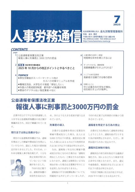 事務所だより「人事労務通信7月号」のお知らせ