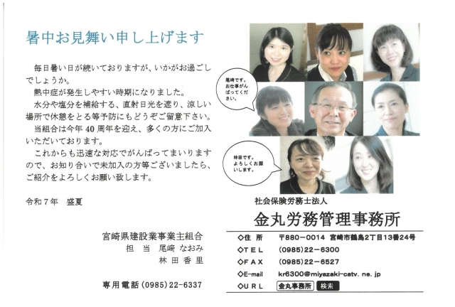 一人親方組合から/暑中見舞申し上げます