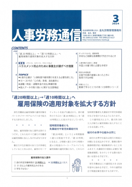 事務所だより「人事労務通信3月号」のお知らせ
