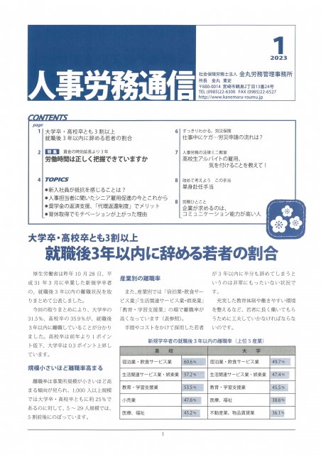人事労務通信今月号の主な内容は、次のとおりです。